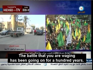 Nabil Sha’th: «La batalla que ustedes están librando ha estado ocurriendo durante cientos de años. Este pueblo ha estado luchando durante cien años para liberar su tierra, y liberar Jerusalén. Cuando griten que están marchando hacia Jerusalén – bueno, esto es exactamente lo que su victoria está haciendo.